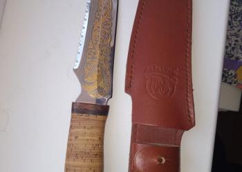Нож охотничий новый производства Златоуста длина 30 см. с кожаным чехлом.