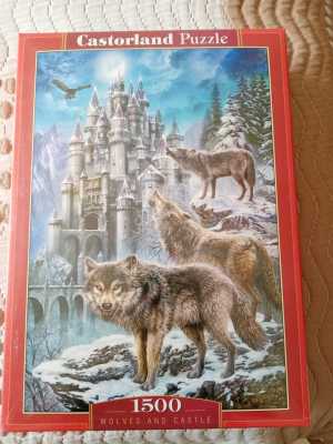 Пазлы 1500 деталей Волки и замок. Коробка 68х47см. Новая, не открытая, упаковонная в целофан коробка.
