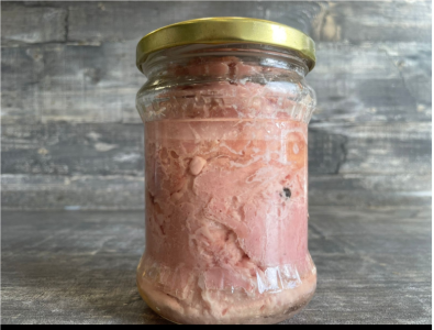 СОСТАВ: Однородный фарш из лосося атлантического (семга), без костей, вода, клетчатка, специи.