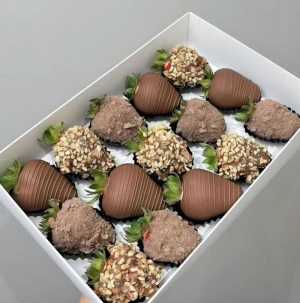 1 клубничка 140 р. Набор идёт от 6 штук😊 Бельгийский шоколад. Молочный и белый. Украсить доп.ягодами - 300 р.