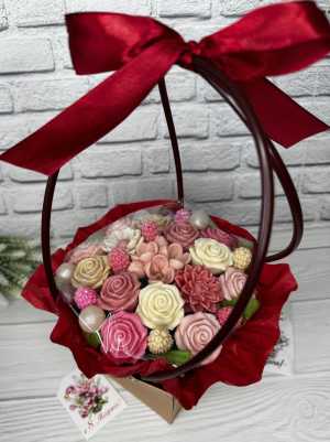 Корзина с цветами и конфетами, хороший подарок к любому празднику . В корзине 17 конфет.