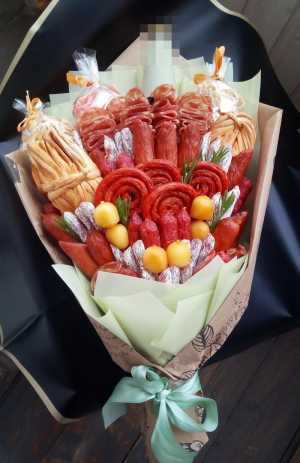 Съедобный мясной конверт или букет ,который порадует как мужчин,так и женщин.