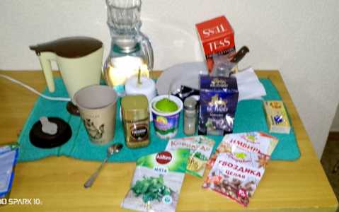 Чай черный листовой с бергамоном. Зеленый с цедрой цитрусовых. Кофа растворимый. Завариваем в термо-кружке.