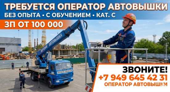 Оператор автовышки от 100000₽ за месяц на руки Обязанности: Проверка машины перед выездом на заявку, Выполнение работ на...