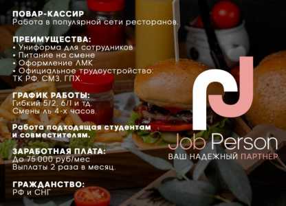 Ведем набор сотрудников в рестораны Твои обязанности: 🔸️Прием заказов на кассе 🔸️ Быстрая выдача заказов...