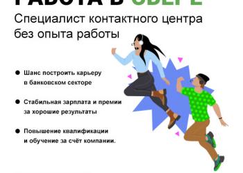 Срочно требуются специалисты контактного центра в СБЕР БАНК Эта вакансия для тебя, если: - ты еще учишься или уже имеешь...