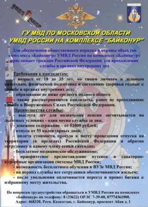 Для обеспечения общественного порядка и охраны объектов комплекса Байконур УМВД России на комплексе Байконур приглашает...