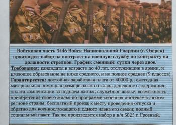 Осуществляется набор на прохождение военной службы по контракту в воинскую часть по улице Военная д. 19.