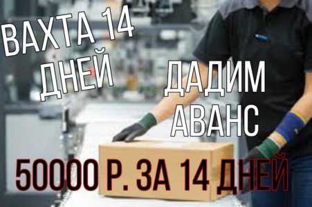 Требуются упаковщики! 👉🏻 ВАХТА 15/20/30/45/60 👍 Муж/Жен, ОПЫТ РАБОТЫ НЕ ТРЕБУЕТСЯ 🔥 от 1800 руб.