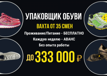 Приглашаем на работу вахтой Упаковщиков обуви от прямого работодателя в Москву от 35/45/60/90/120 смен ✔ Смена от 2700...