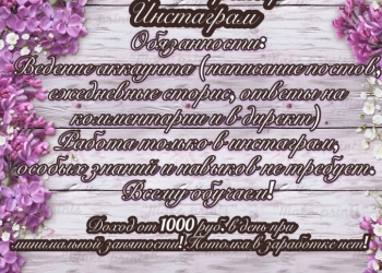 Обязанности: Ведение аккаунта (написание постов, ежедневные сторис, ответы на комментарии и в директ) Работа только в...