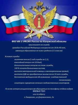 Приглашаются на службу в федеральное казенное учреждение "Лечебное исправительное учреждение №8 Управления Федеральной...