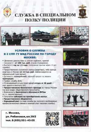 Во 2-ой Специальный Полк Полиции Главного Управления МВД России по городу Москве объявлен набор кандидатов на должность...