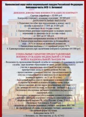 Объявляется набор на военную службу по контракту в войсковую часть 3468 Челябинская область г.