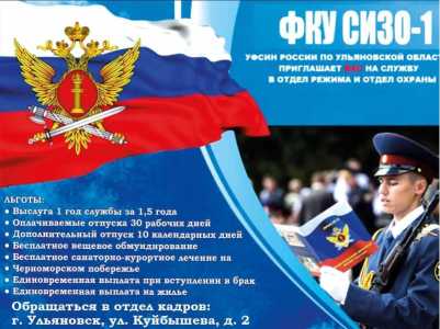 Приглашаем на службу в ФКУ СИЗО-1 УФСИН России по Ульяновской области и учебу в ведомственных ВУЗах ФСИН России.