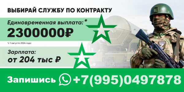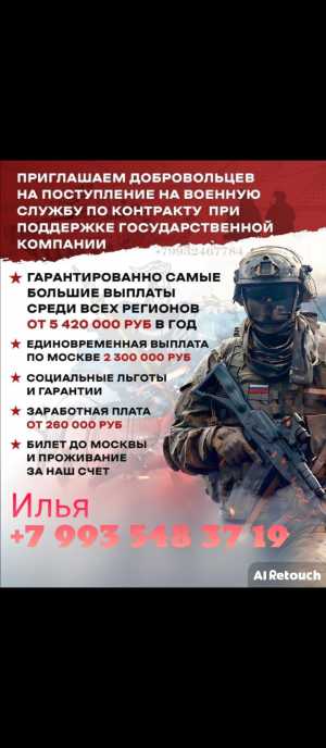 Поступай на военную службу по контракту! 1 000 000 рублей выплата за первый месяц службы и 4 000 000 рублей за год службы по...