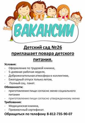 Наш дружный коллектив в школьную столовую требуется повар, кухрабочая. Иметь медицинскую книжку.