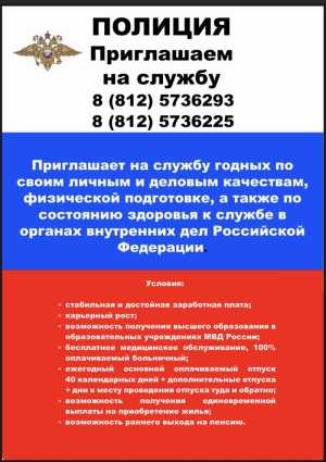 Всю подробную информацию о вакансиях и условиях службы можно узнать по телефону: 8(812) 573-62-56(25)