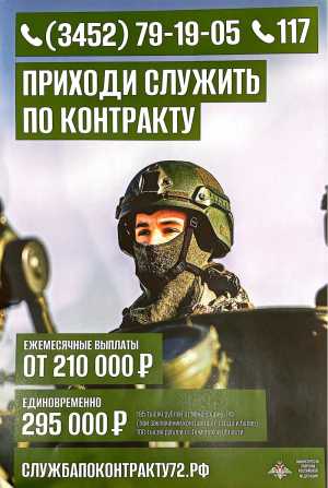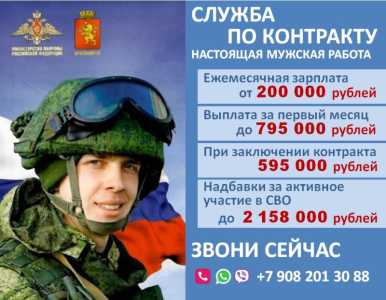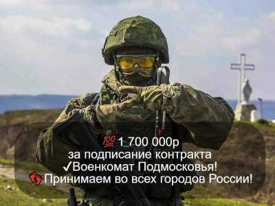 Ведем набор на военную службу по контракту. Единовременная выплата в первый месяц 800000 рублей +210 денежное довольствие.