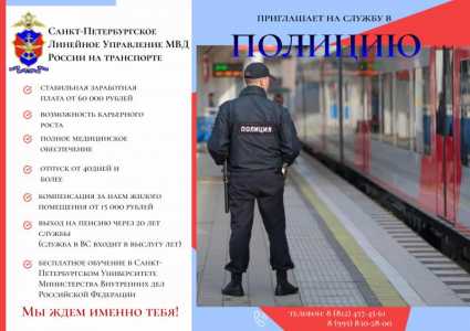 Тюменский линейный отдел МВД России на транспорте осуществляет набор граждан РФ для замещения вакантных должностей, з/п от...