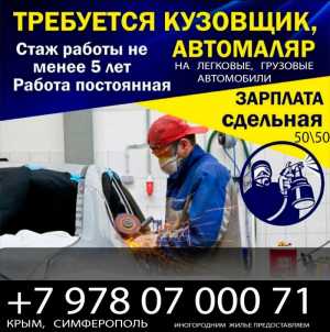 Требуется автомаляр,подготовщик или жестянщик,с опытом!!кто говорит что все умеет а на самом деле не чего не звоните,устал...