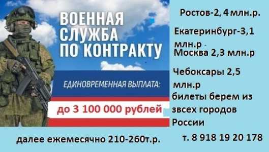 ВОЕННАЯ СЛУЖБА С ЕДИНОВРЕМЕННОЙ ВЫПЛАТОЙ * 🔥 Екатеринбург- 2 900 000 🔥Ростов на Дону-2400 000 🔥 Воронеж-905 000.