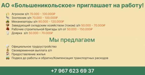 Сфера деятельности: Производство, промышленность; Специализация: Сельхозпроизводство; Опыт работы: Нет опыта; Тип занятости: Полная занятость; График работы: Сменный график; Вид организации: Работодатель;