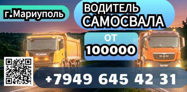 Водитель самосвала от 100 000 ₽ за месяц на руки Выплаты: два раза в месяц Мариуполь.