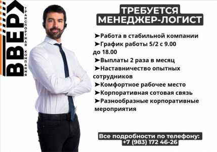 В дружный коллектив требуется логист , 8-ми часовой рабочий день , зарплата 2 раза в месяц.
