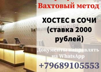 Сфера деятельности: Туризм, гостиницы, рестораны; Специализация: Хостес; Опыт работы: Нет опыта; Тип занятости: Полная занятость; График работы: Вахтовый метод; Вид организации: Работодатель;