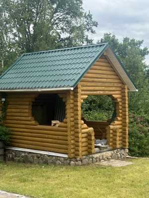 Беседка, барбекю из калиброванного бревна. В чистоте 3x4 метра. Полный комлект ( бревна, кровля, отливы, крыльцо ).