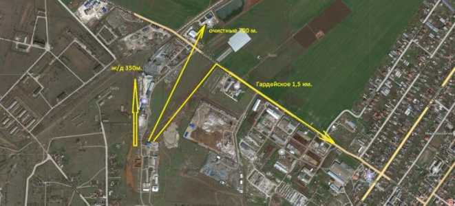 Гвардейское, в промышленной зоне, огорожена бетонным забором по всему периметру, абсолютно ровный участок и имеет 2 выезда.