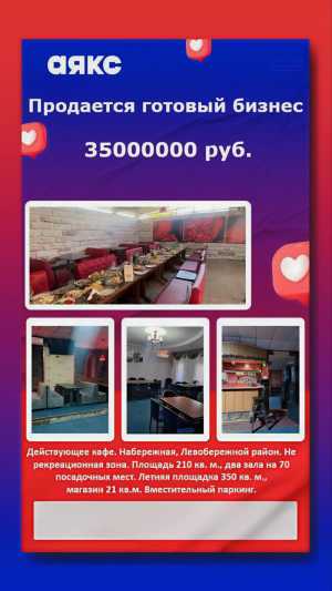 Тип объявления: Продам; Вид объекта: Ресторан, Кафе; Готовый бизнес: да;