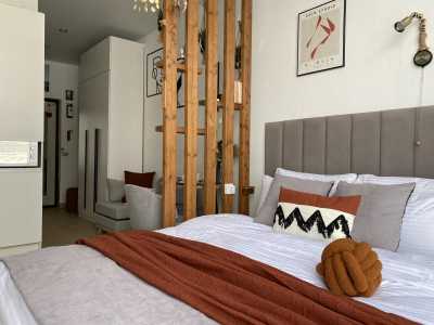 Комфортабельная студия уровня Люкс. Всё продумано для комфортного проживания. Полностью укомплектована.