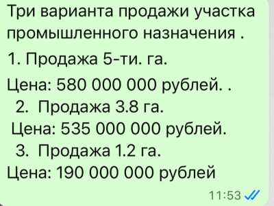 Тип объявления: Продам; Категория земель: Промышленные земли; Вид права: Собственность; Площадь: 116000;