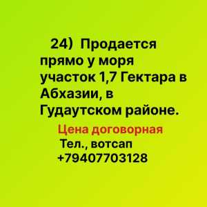 24) Продается прямо у моря участок 1,7 Гектара в Абхазии, в Гудаутском районе. Цена договорная. Тел.,
