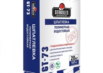 ШПАТЛЕВКИ Шпатлёвка полимерная водостойкая ГЕРКУЛЕС GT-73 537р/шт на цементной основе белая 20кг Шпатлёвка полимерная...