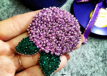 Брошь ручной работы в стиле вышивка гладью и бисером