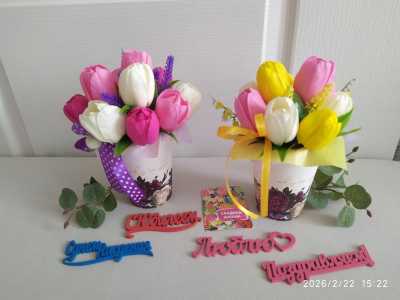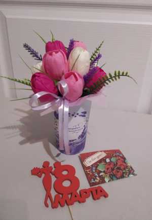 Букет из декоративных мыльных тюльпанов отлично подойдёт в качестве подарка на любой повод.