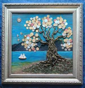 Размер 40×50.Денежное дерево-уникальный,необычный подарок.