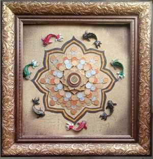 Панно,,Денежное дерево из монет,,Светлое,,Размер 40×40,в красивом багете. Цвет-серебро/золото...