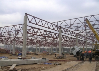 Сорока метровые ангары в виде готовых металлоконструкций. Целые и прочные.