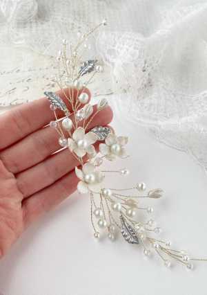 Свадебное украшение для волос. Веточка из бусин и проволоки в свадебную или вечернюю прическу.