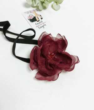 Чокер - колье галстук декорирован цветком в цвете бордо.