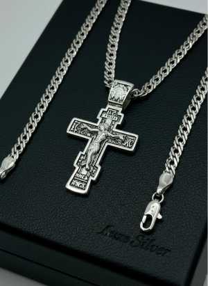 Комплект Luxe Silver-Мужская Цепочка 60см с Крестиком плетение Двойной Ромб.