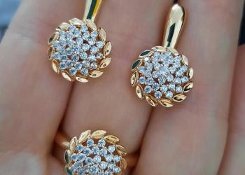 Красивый позолоченный комплект Gold с цирконами "Изумруд" -Серьги и Кольцо ✨️набор, гарнитур✨️ Гипоаллергенный ювелирный...