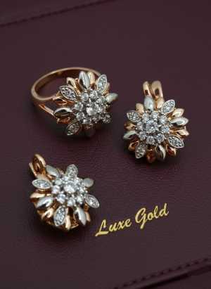 Комплект Золотой Цветок Gold-Серьги и Кольцо🌟 позолоченный набор украшений Гипоаллергенный ювелирный сплав, золотое...