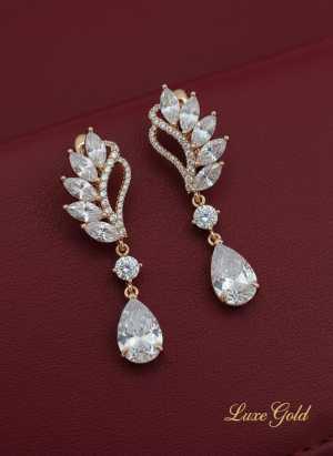Красивые Роскошные Серьги Позолоченные Luxe Gold с фианитами ✨️ ☆гипоаллергенный ювелирный сплав (т. н.