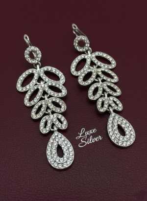 Серьги Crystal Silver 💎 вечерние✨️, длинные, с подвесками, свадебные, праздничные, на выход, на фотосессию, на свадьбу, под...