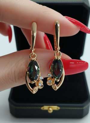 Серьги позолоченные с цирконами Мистик Топаз Gold ✨️ ☆гипоаллергенный ювелирный сплав, золотое покрытие 18К, кубический...